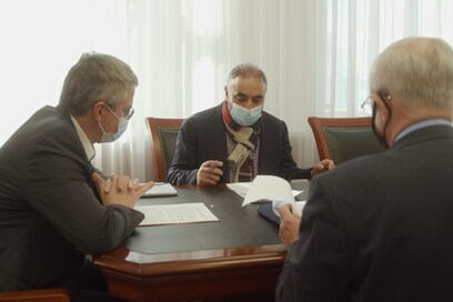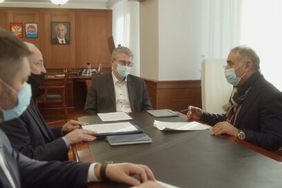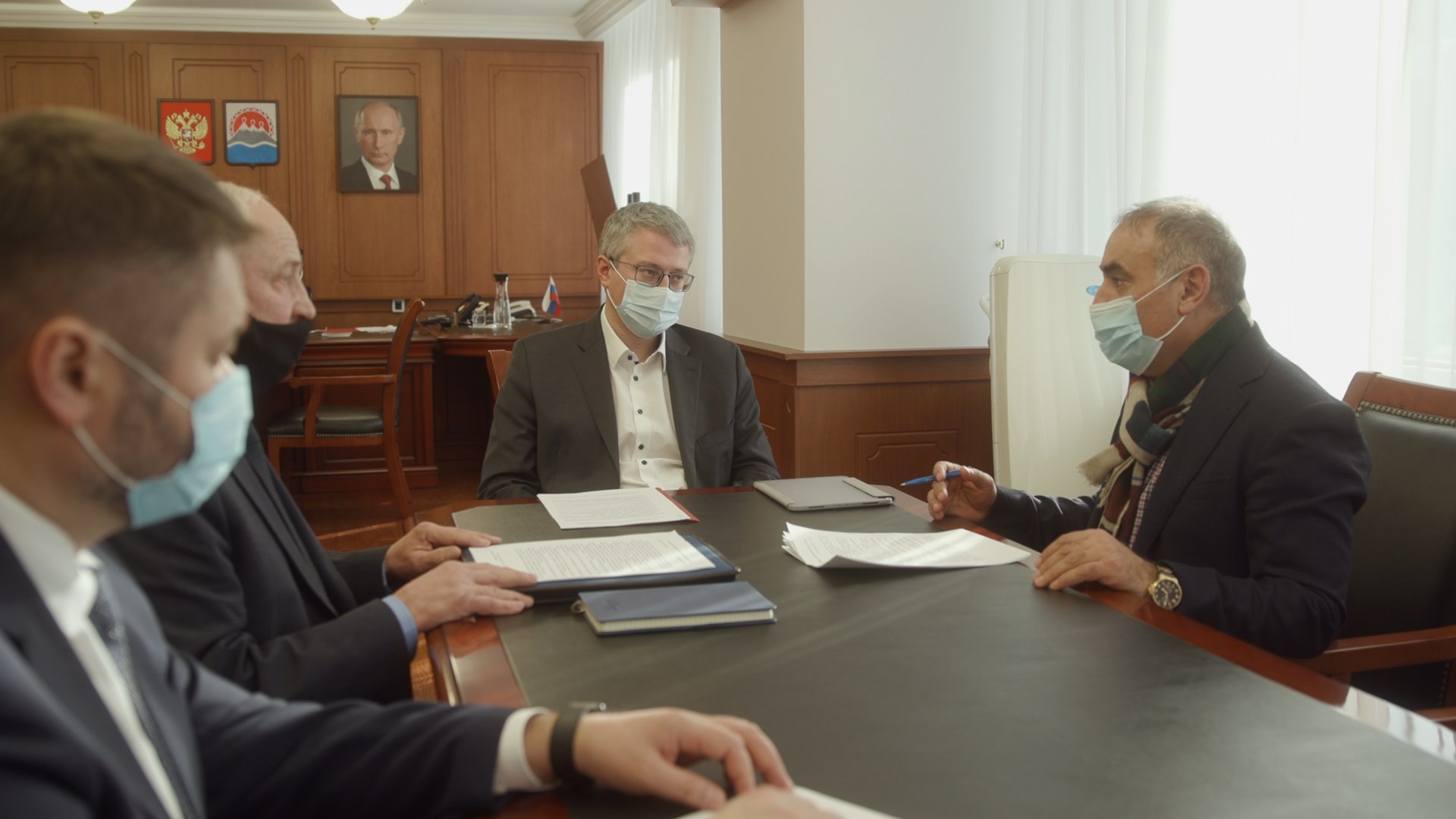 Владимир Солодов провел рабочую встречу с президентом Союза "Торгово-промышленной палата Камчатского края" Евгением Кабановым и заместителем председателя постоянного комитета по бюджетной, налоговой, экономической политике, вопросам собственности и предпринимательства (на неосвобожденной основе) Законодательного собрания Камчатского края Рашидом Шамояном.